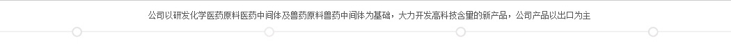 濟南德誠和牧醫藥科技有限公司位于美麗的泉城濟南,公司以研發化學醫藥原料醫藥中間體及獸藥原料獸藥中間體為基礎,大力開發高科技含量的新產品,公司產品以出口為主,多個產品深受國內外客戶的認可。公司以“創新,創優,創規模”為發展理念...更多內容
